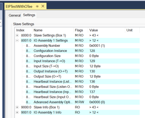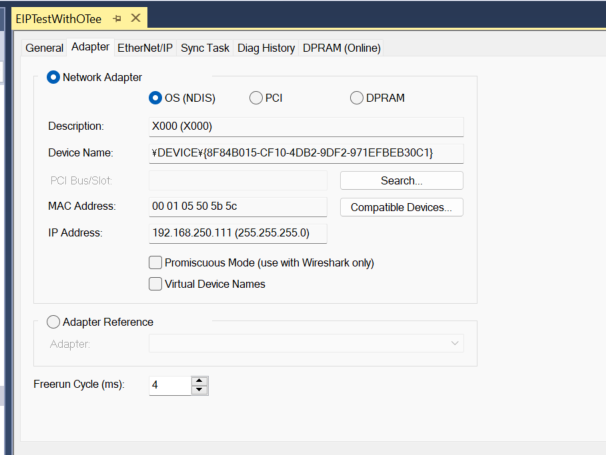 それでは実際にTwinCAT3のEthernet/IP Adapterに合わせて設定します。