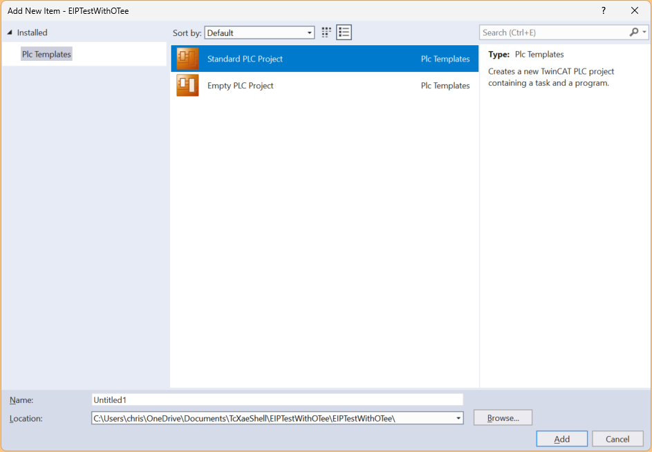 Standard PLC PLC Projectをクリックし、Addで追加します。