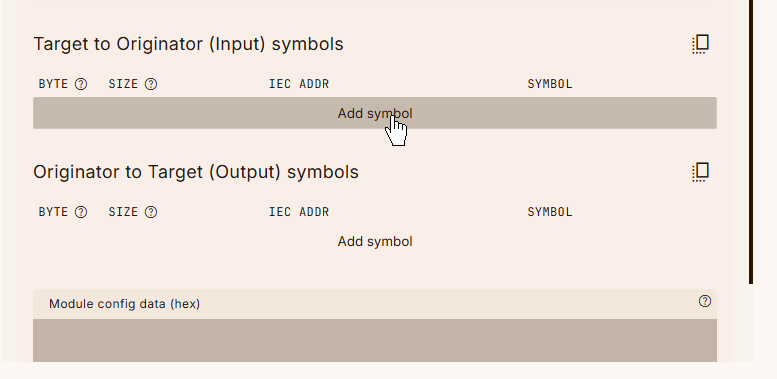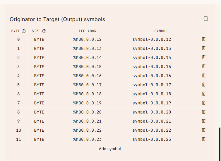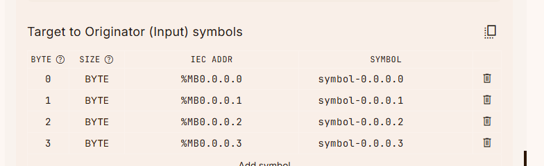 各接続に占有するByte数を変更するには、設定画面の下にあるAdd Symbolをクリックします。