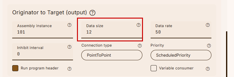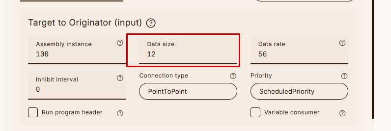 Config InstanceのデータサイズはTwinCAT3側のConfiguration Instanceデータサイズに合わせて設定します。今回の例では0になります。