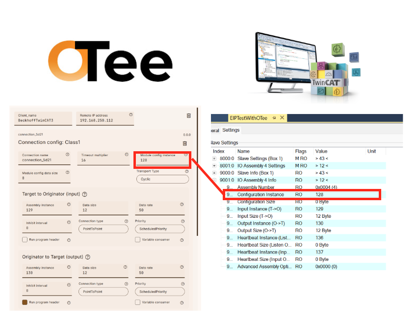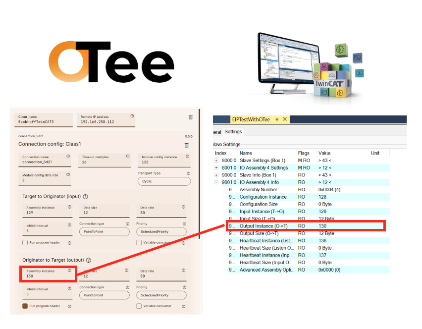 OTeeとTwinCAT3の設定画面を両方見ながら設定していきましょう。