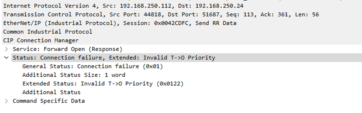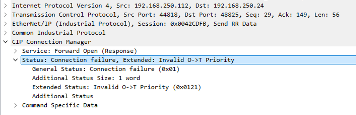 TwinCAT3側はこのPriorityにしか対応してないので、他のPriorityに設定するとInvalid T→O Priorityにエラーが発生します。