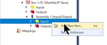 次は先程追加したAssembly Inputs→右クリック→Add New Itemします。