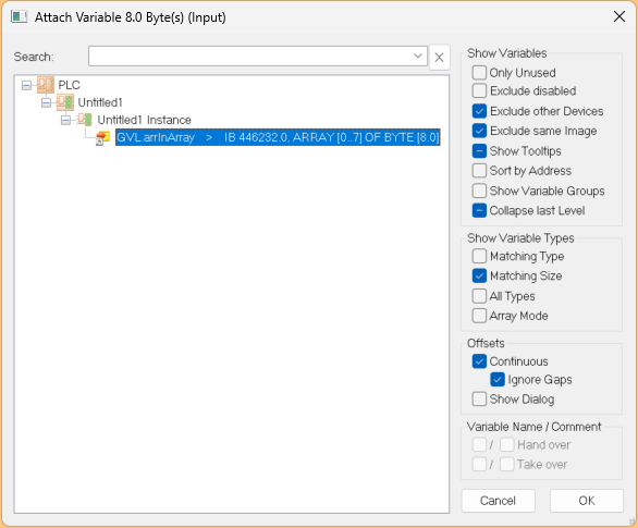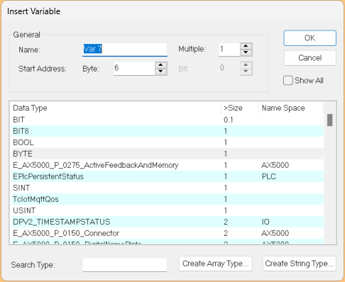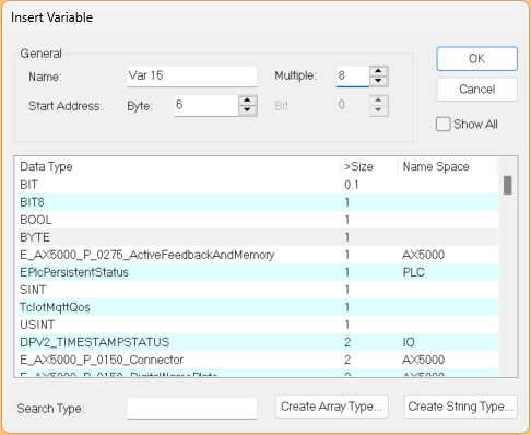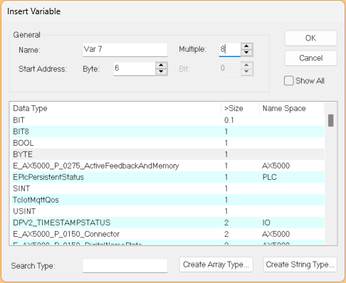 Muitipleを8に入れて、連続のBYTEデータを8個追加します。