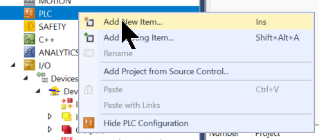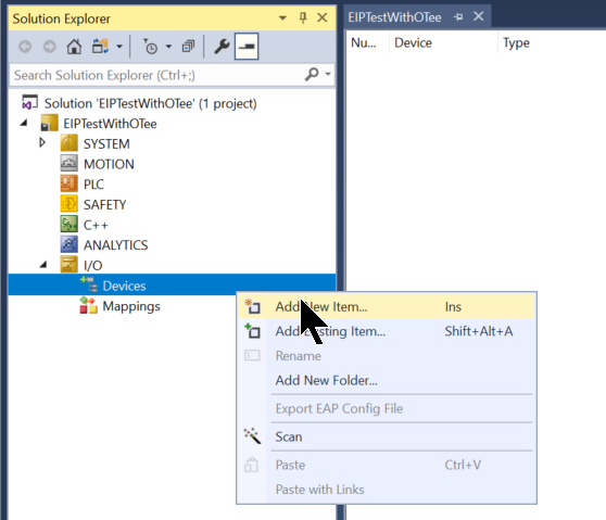 最初にI/O→Devices→右クリックでAdd New Itemします。
