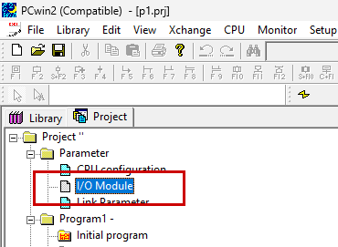 今回の記事では使用しませんが、ハードウェア上では2ETモジュールもインストールされていますので、そのモジュールの追加方法を説明します。Parameter→I/O Moduleをクリックします。