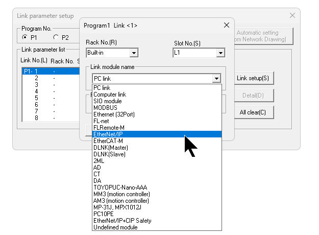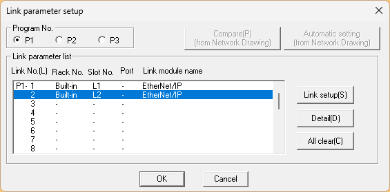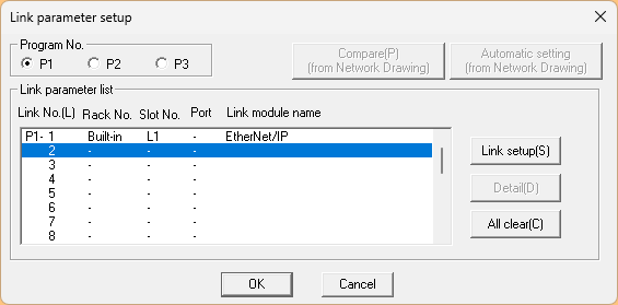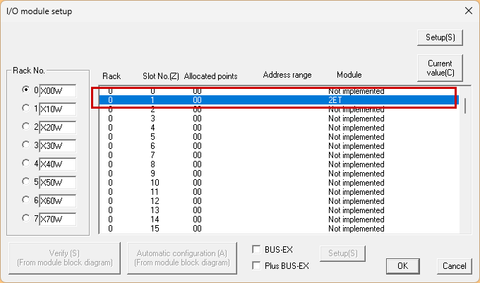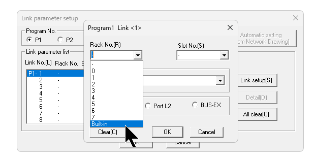 今回の記事ではToyopuc NANO本体のPORTを使用しますので、Rack No.をBuilt-inに設定します。