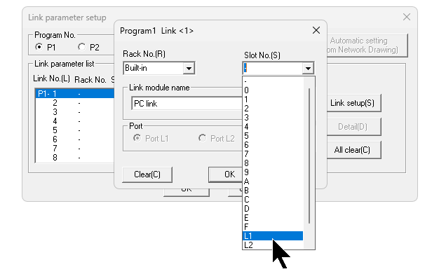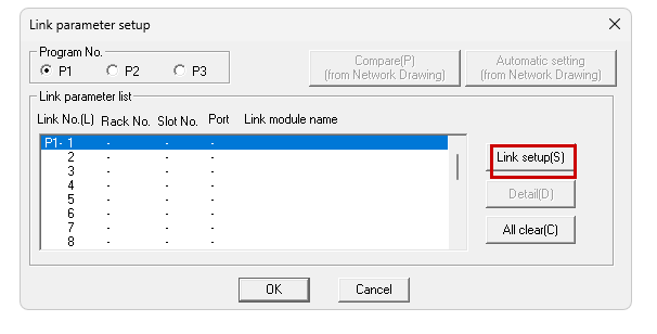 次はToyopuc NANO本体のポートの設定を行うため、Parameters→Link Parameterをクリックします。