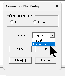 今回の記事ではToyopuc NANO側がOriginatorなので、FunctionのDrop-listでOriginatorに設定してください。