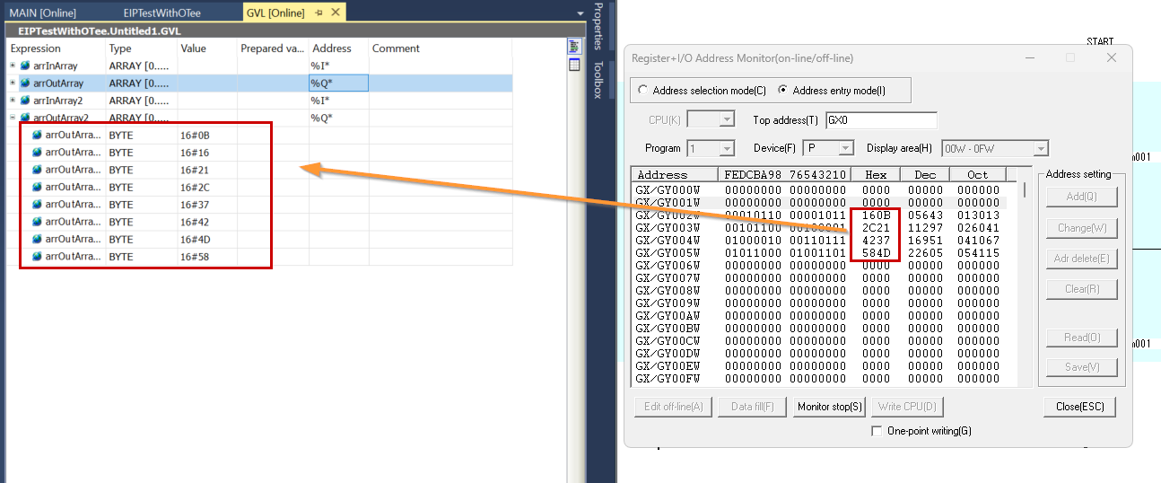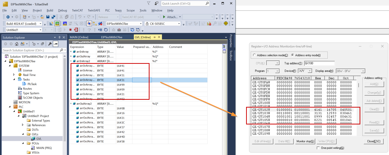 同じく、Toyopuc NANO側の出力データを、Beckhoff TwinCA3にも受け取りました!
