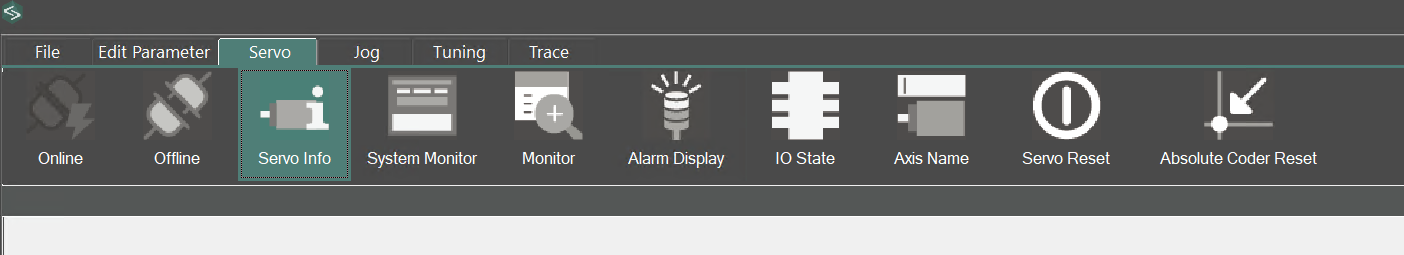Servo→Servo Infoをクリックし、現在SERVOモータの情報を確認できます。