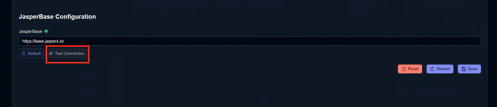 また、”Test Connection”ボタンをクリックし、JasperNode RuntimeとServerが接続OKなのでをCheck可能です。