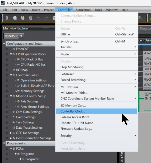 最後はCPUの時間を設定するため、Controller→Controller Clokcをクリックします。
