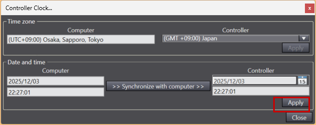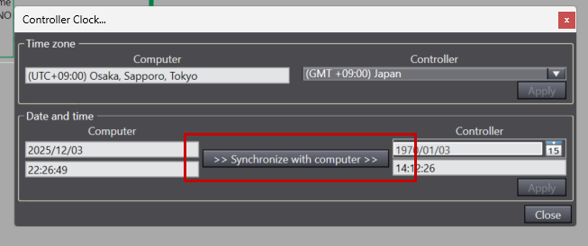 Synchronize With Computerをクリックし、PCとOMRON CPU間の時間を同期します。