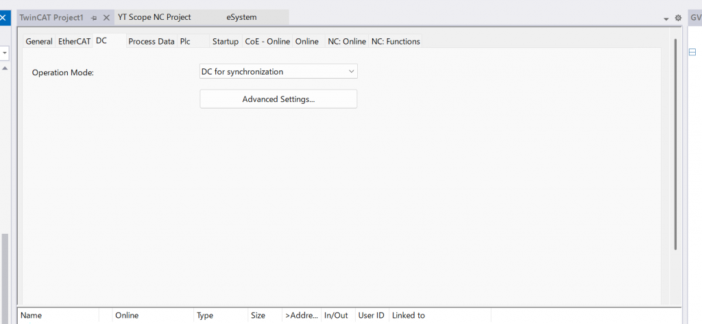 SCシリーズのSERVOが手動で追加した場合はDC for synchronizationのOperation Mode設定するのは忘れなく。