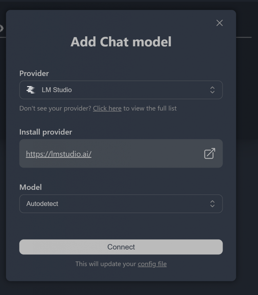ModelをAutodetectに設定し、Connectをクリックしましょう。