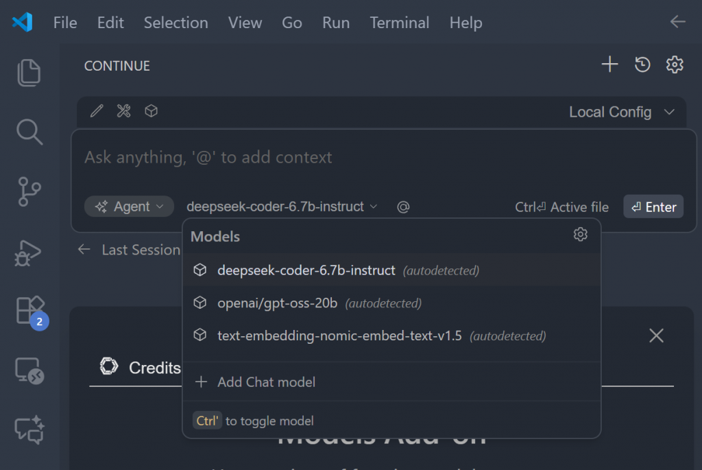 また、ローカルLLMともつながることは、Continueのよいところです。つまり…社内コードを外に出さずにAI支援ができ、製造業・制御系エンジニアには特に相性がいいかもしれません。