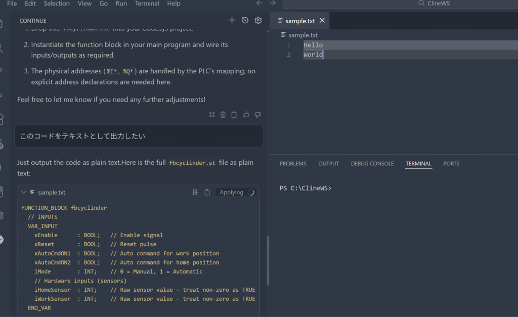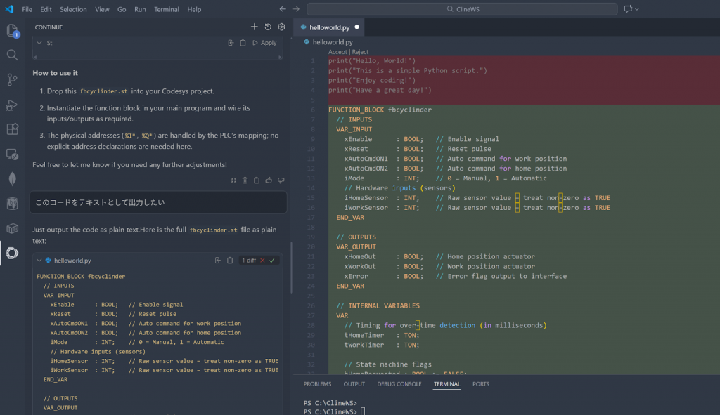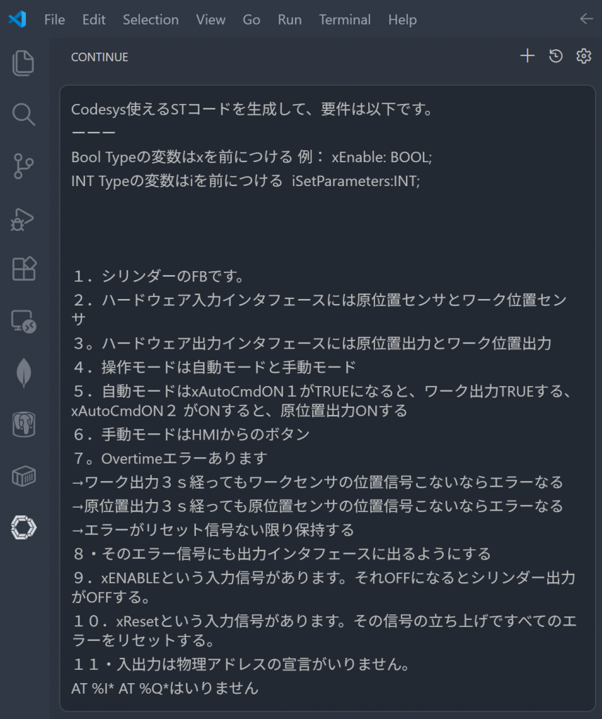 CONTINUEのPlug-inにCodesysブログラムの仕様を提出します!