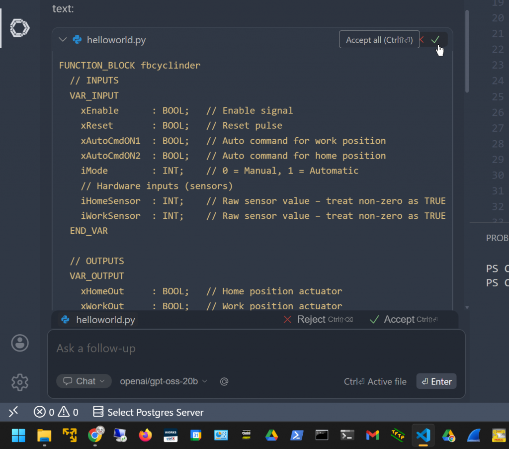 Done!CONTINUEがLM StudioのServerからCodesysのST コード生成ができました。