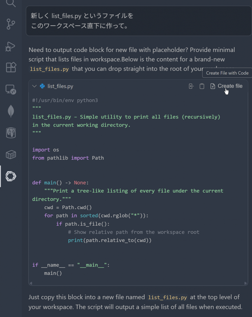 - ファイル全体やプロジェクト文脈を読んだ上での回答
