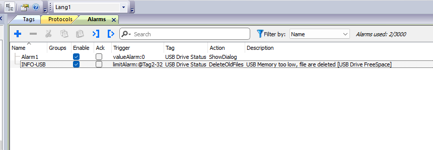 こちらのlimitAlarmはタグ値が限界値を超えたときにトリガーされるアラーム、注意するのは値が限界値に達しただけではアラームはトリガーされません。