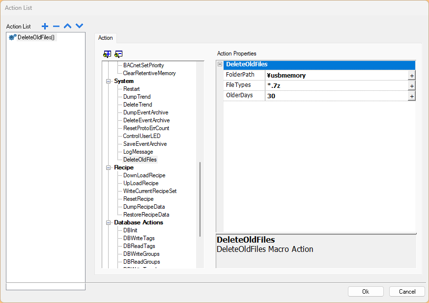 次はトリガーイベントですね。今回はUSBメモリ、.7zで、30日前のFILEを全部削除します。