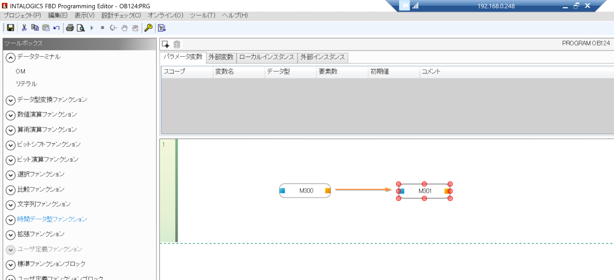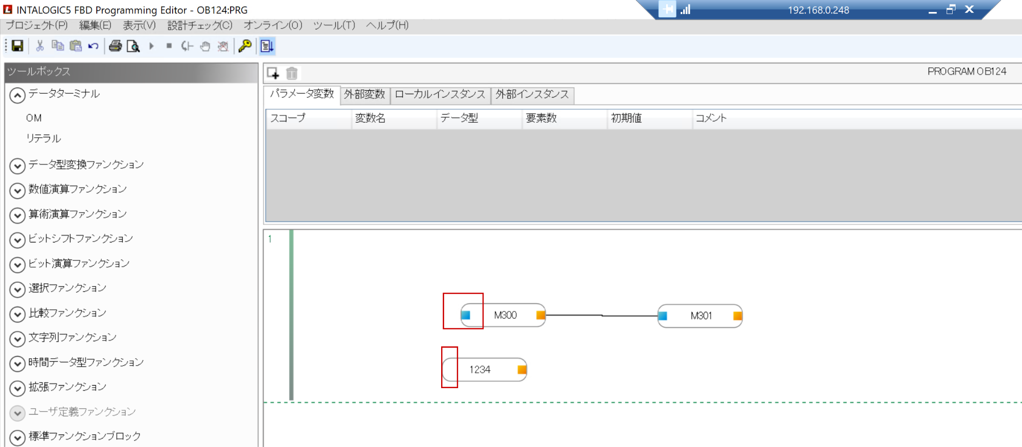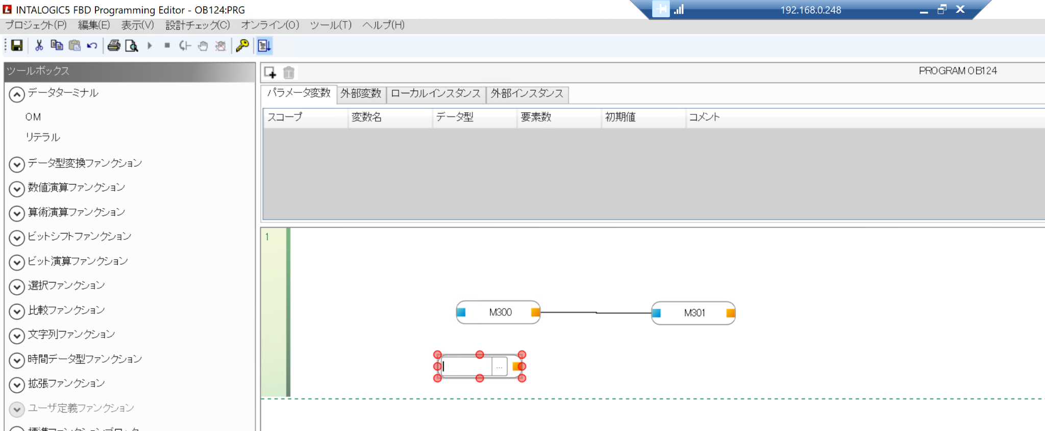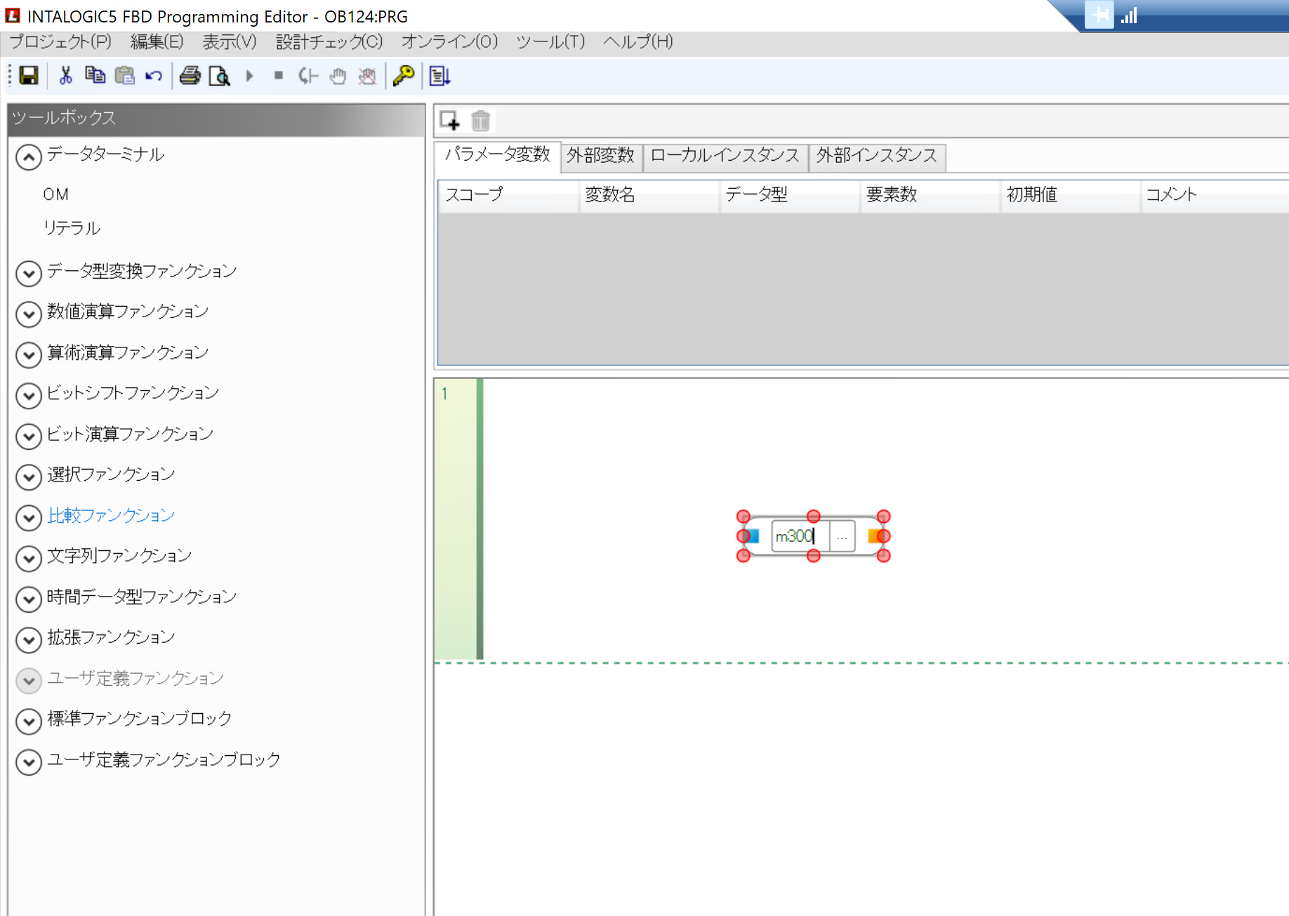 こちらはFBD言語の編集画面になります。