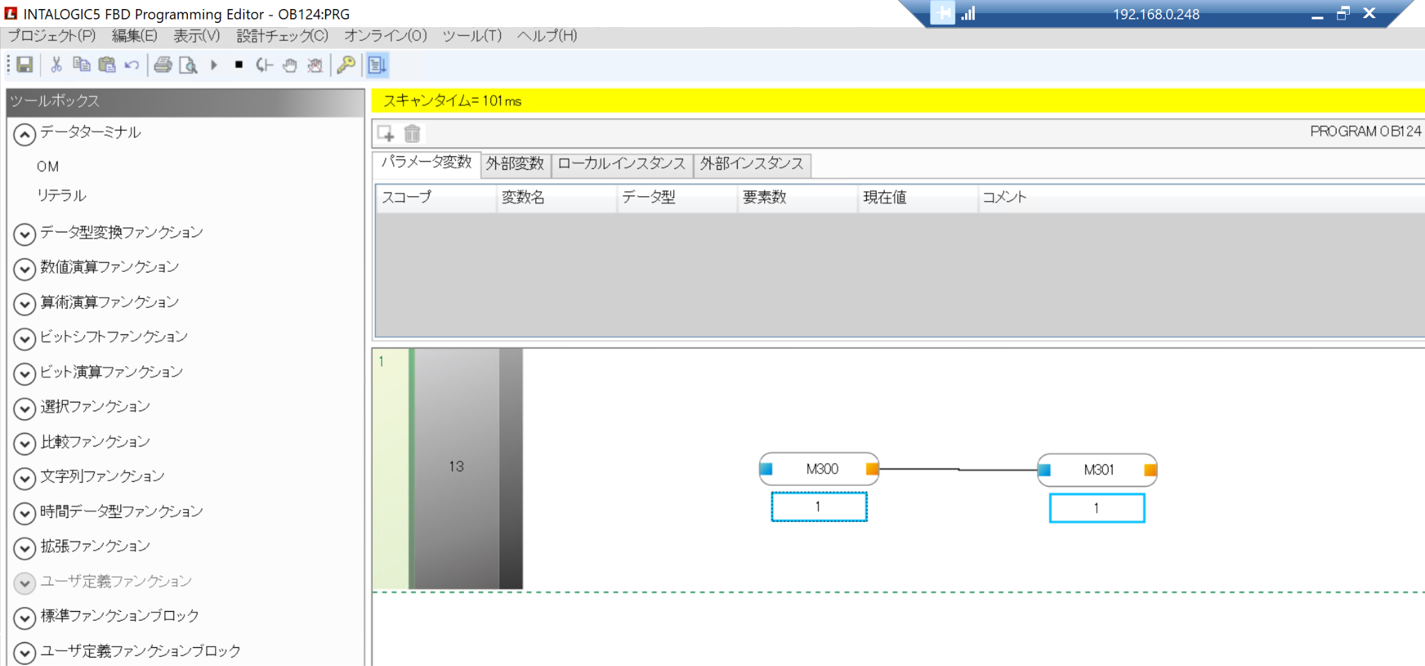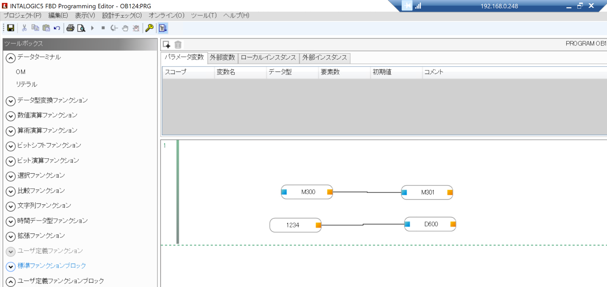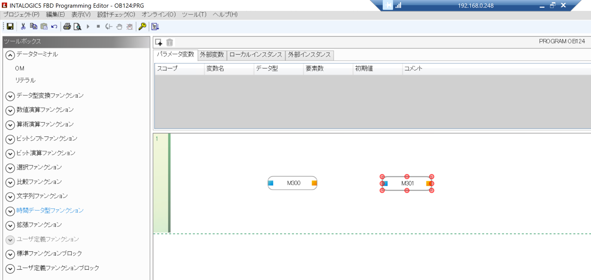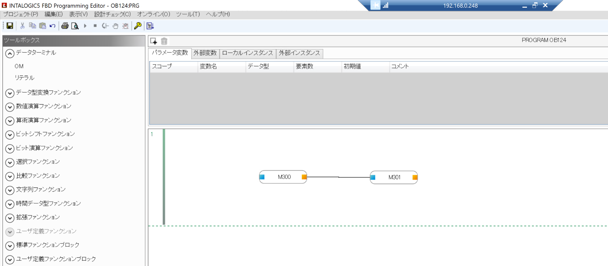 こちらはFBD言語の編集画面になります。