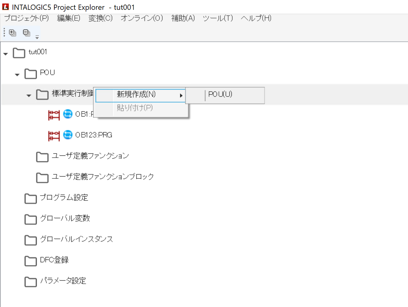 POU→標準実行制御プログラム→右クリック→新規作成→POUします。