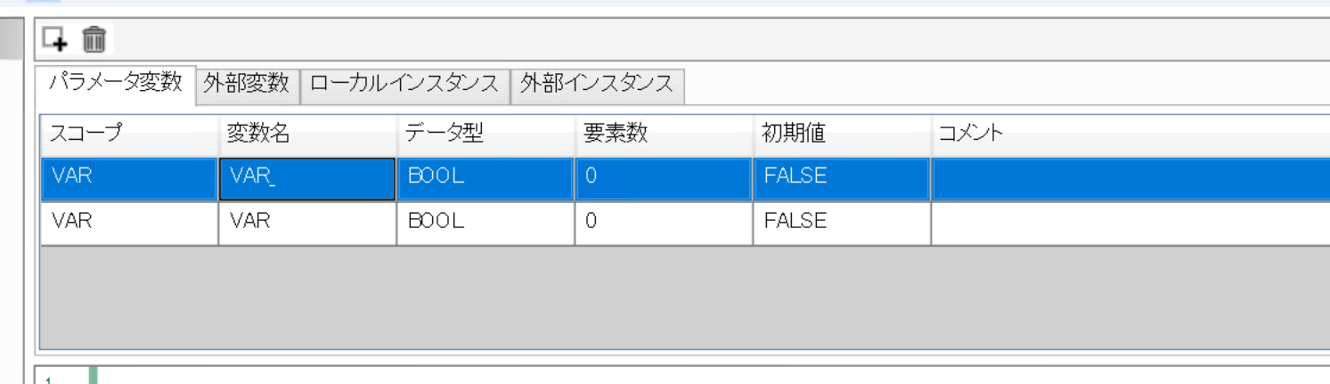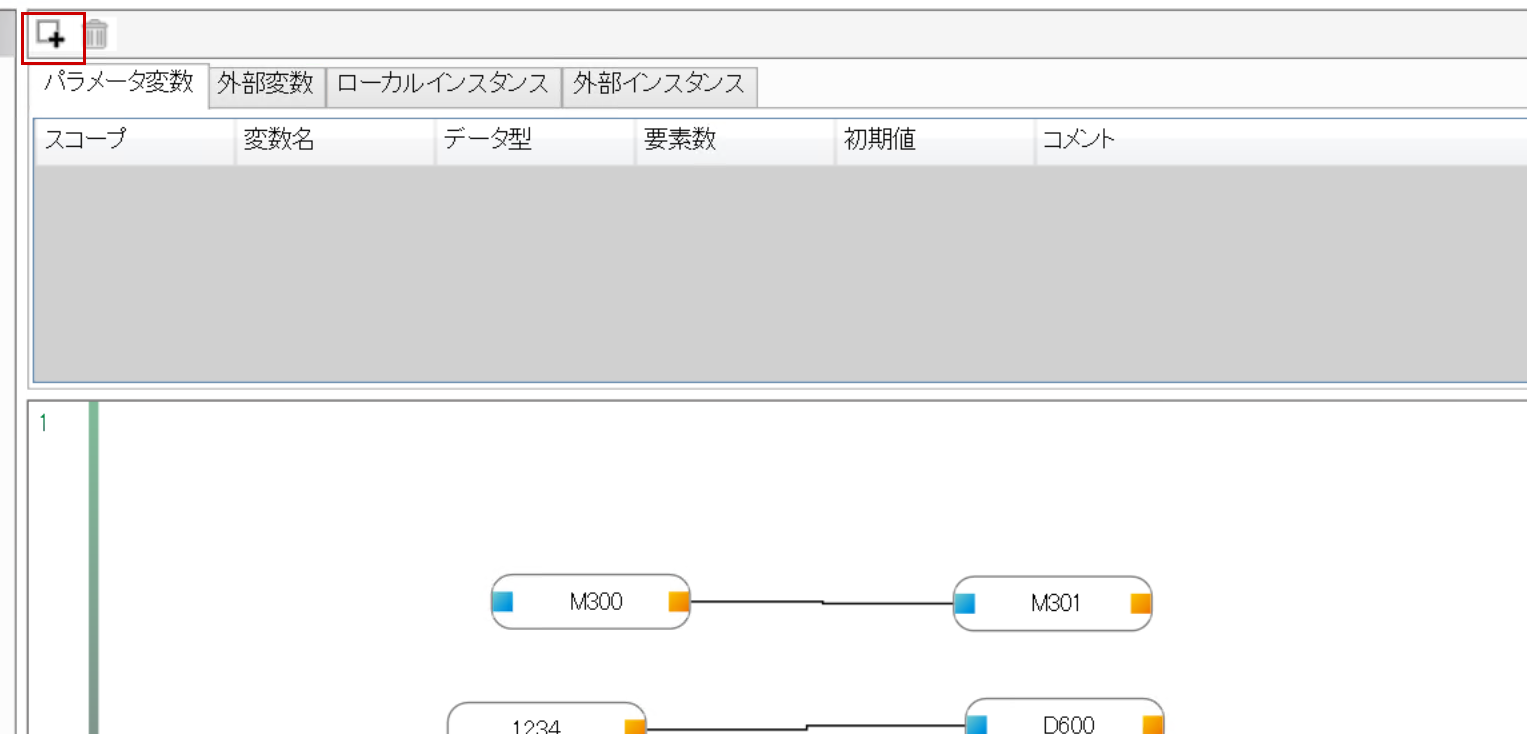 次はパラメータ変数の画面にある+ボタンをクリックします。