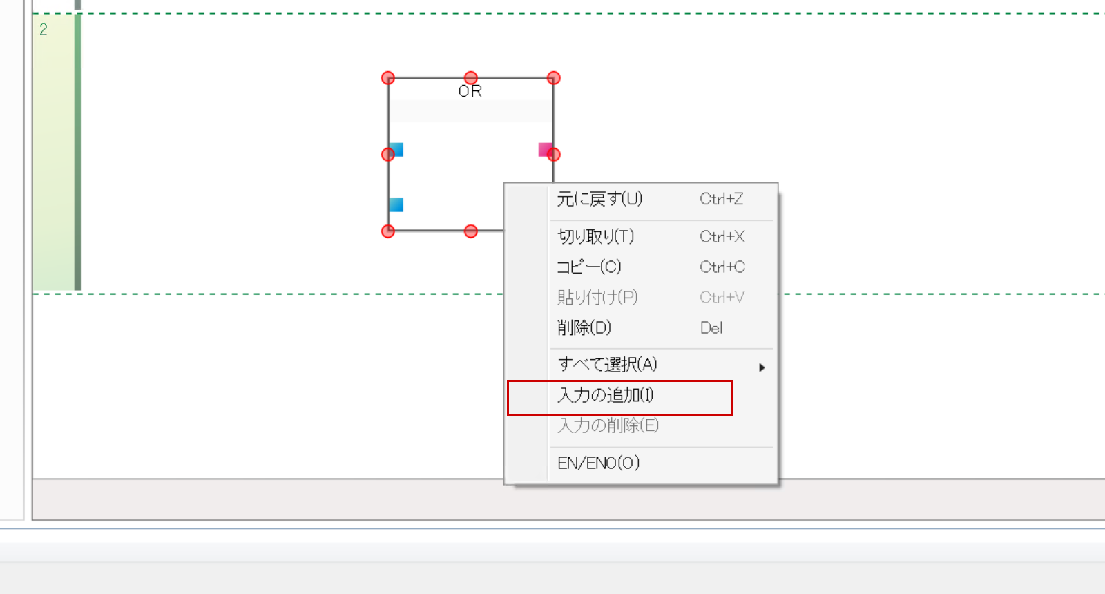 Default上ではORなどのファンクションの入力が2つだけですが、もしそれ以上の場合はファンクションを右クリック→入力の追加をクリックします。