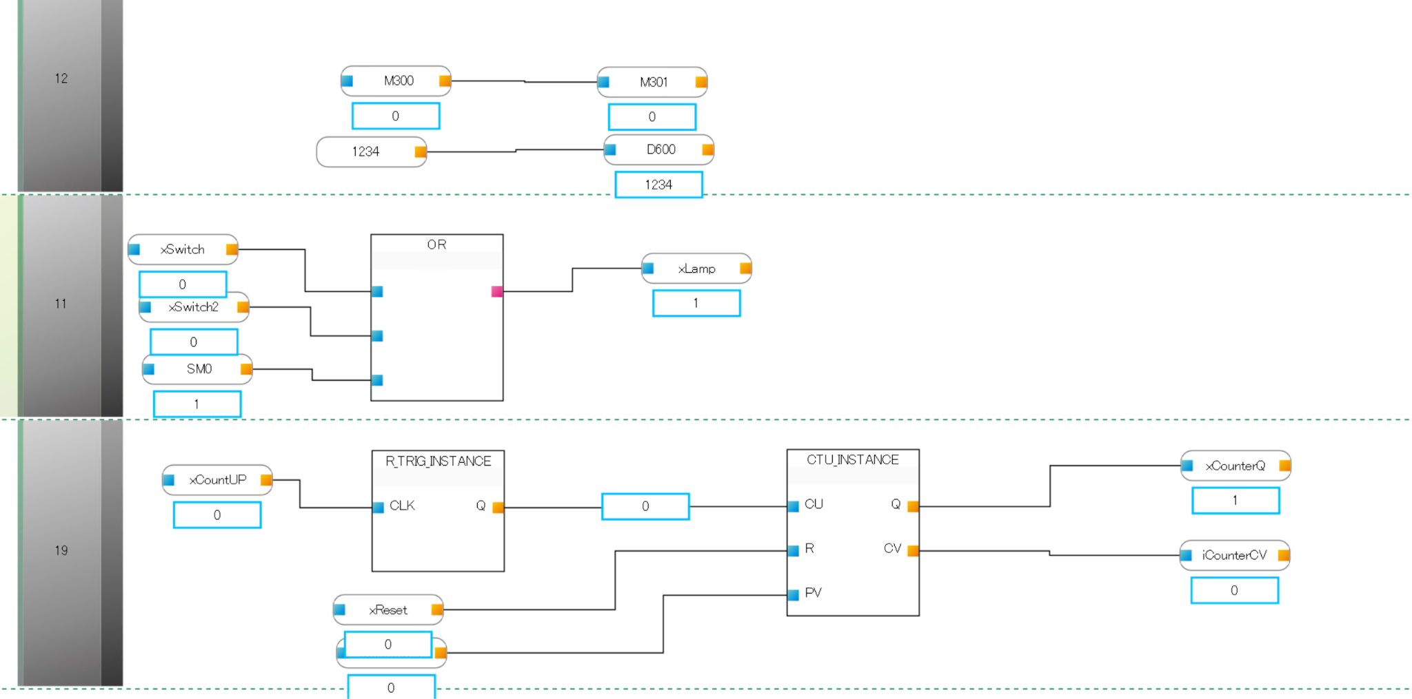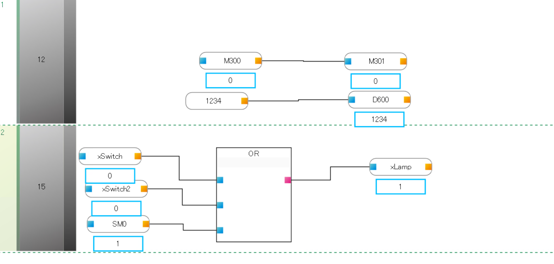 下図のように3つのOR条件の中にどっちかONになったらxLampがTRUEになります。