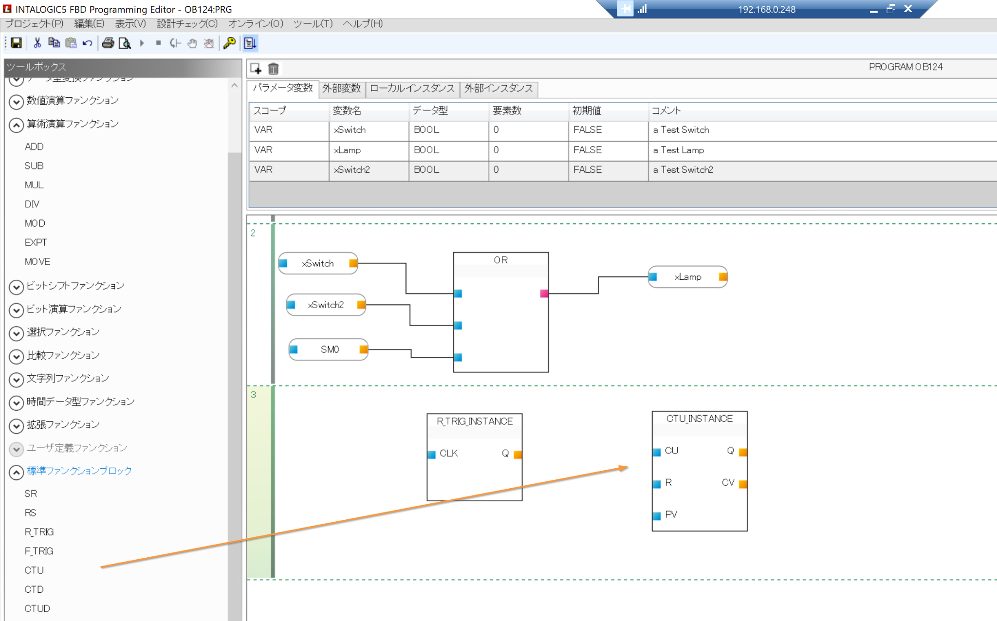最後はFBDプログラムで標準ファンクションブロックを使用します。