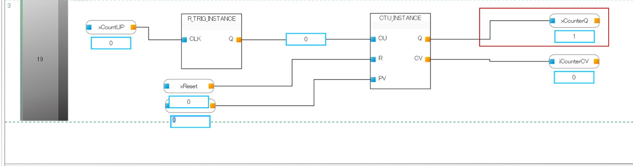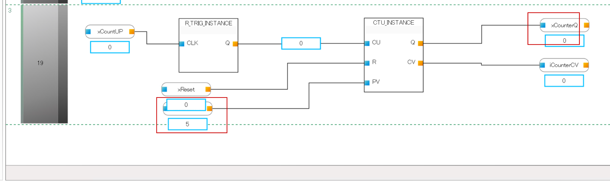 次はCTU(Counter標準ファンクションブロック)を追加しましょう。