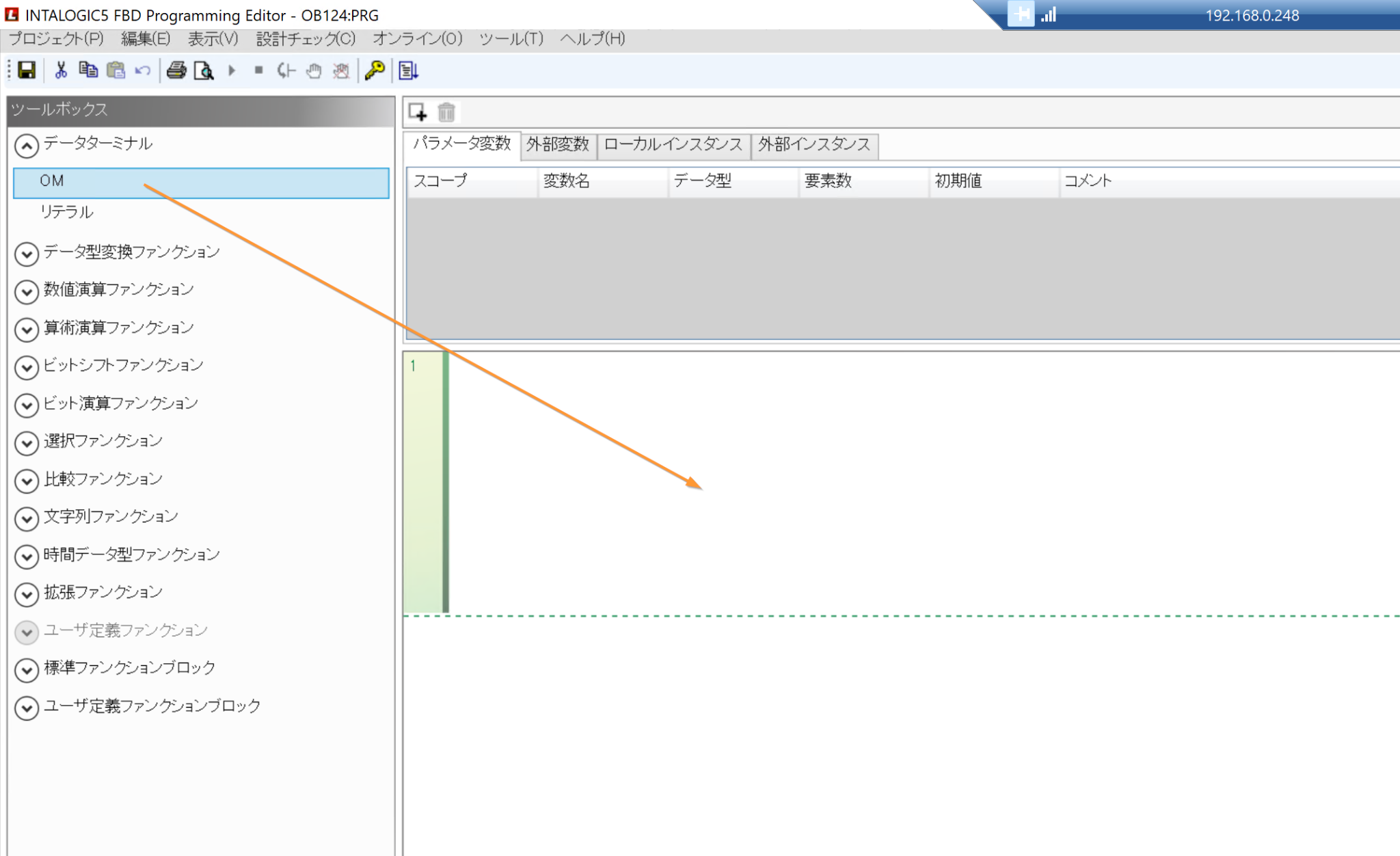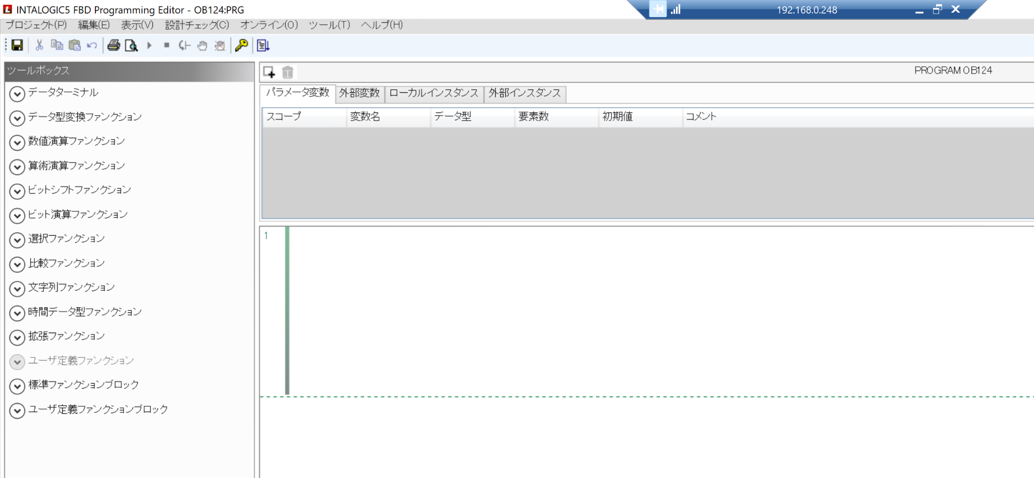 次はFBD言語でHallo Worldのプログラムを作成してみましょう。