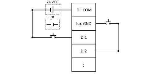こちらはAMAX-5052 16-ch デジタル入力モジュールの配線例です。