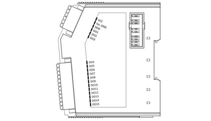 こちらはAMAX-5057SO 16-ch ソース型デジタル出力モジュールの側面です。