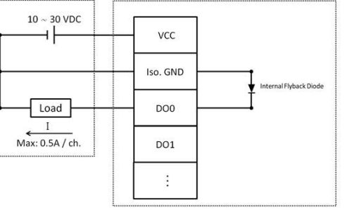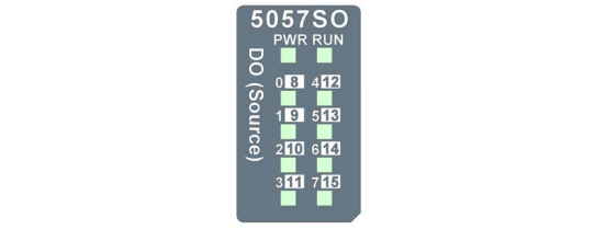 AMAX-5057SOモジュールは、16チャンネルのデジタル出力(ソース)チャンネルを備えています。デジタル出力チャンネルには、デジタルステータスを示すLEDが搭載されています。このモジュールは、データバスとI/Oチャンネル間に2,000 VDCの光絶縁を提供しますが、チャンネル間の絶縁は提供しません。高電圧または高電流によってチャンネルが損傷した場合でも、すでに絶縁されているため、システム全体(他のモジュールおよび制御ユニットを含む)は影響を受けません。ただし、I/O電源がシステムと同じ電源を使用している場合、絶縁機能は動作しません。