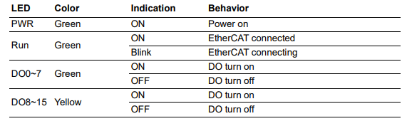 こちらはAMAX-5052 16-ch デジタル入力モジュールのLEDの意味合いです。