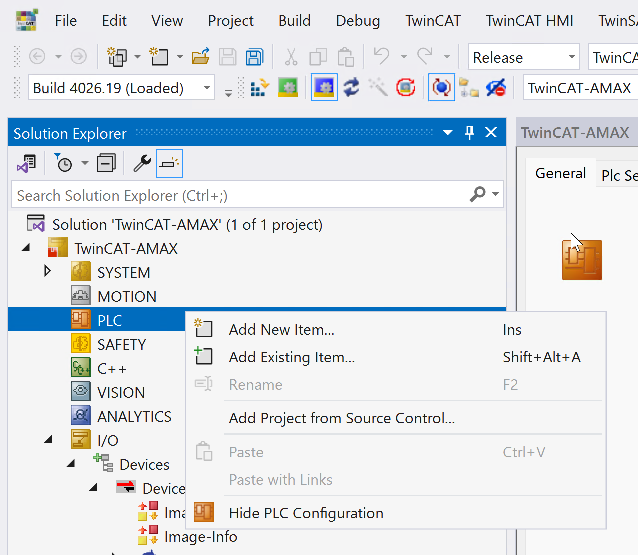 次はPLC→右クリック→Add New ItemでPLCプロジェクトを追加します。