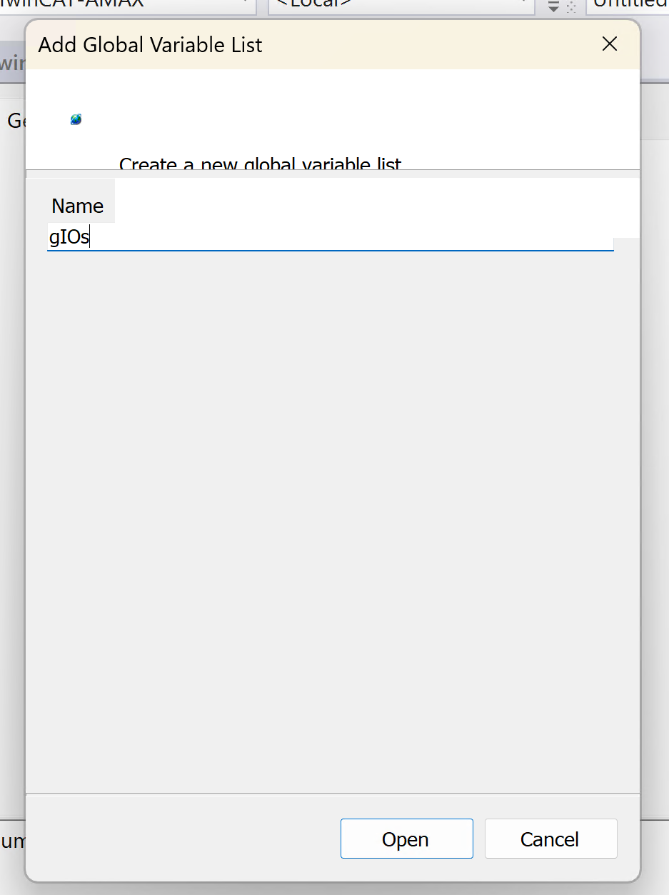 Global Variables List名を入力し、Openします。