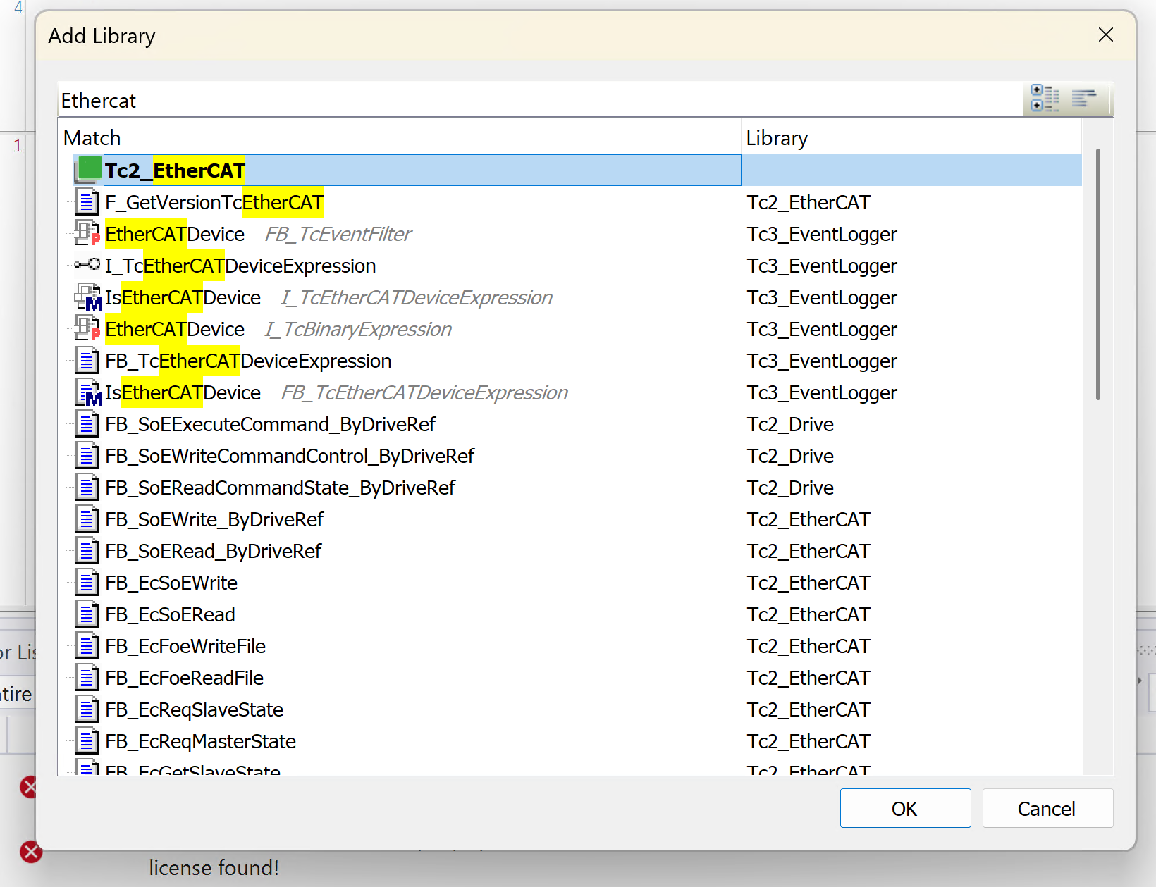 Tc2_EtherCATを検索し、OKで追加します。