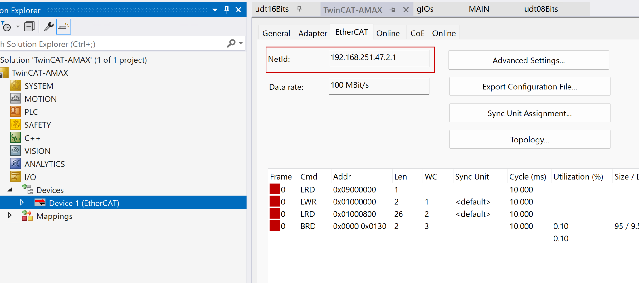 Devies→EtherCAT→NetIdから確認できます。