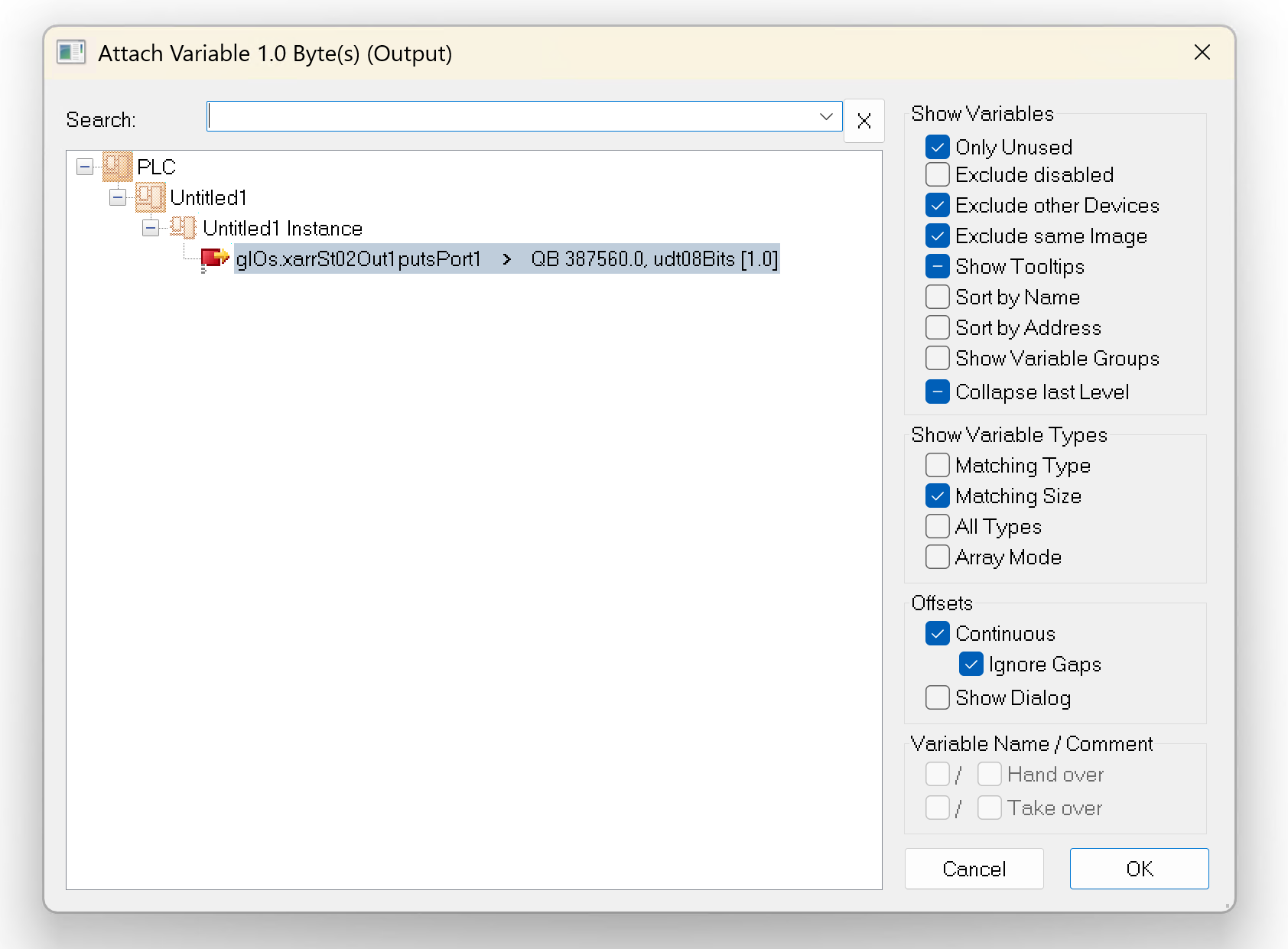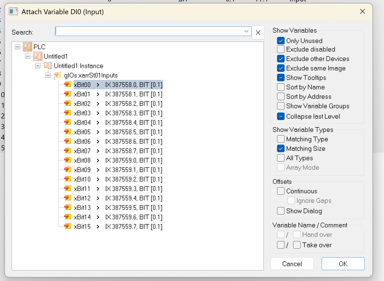 こちらは8ビット(1バイト)のデータを個別のビットとしてアクセスするためのユーザー定義データ型(UDT)です。