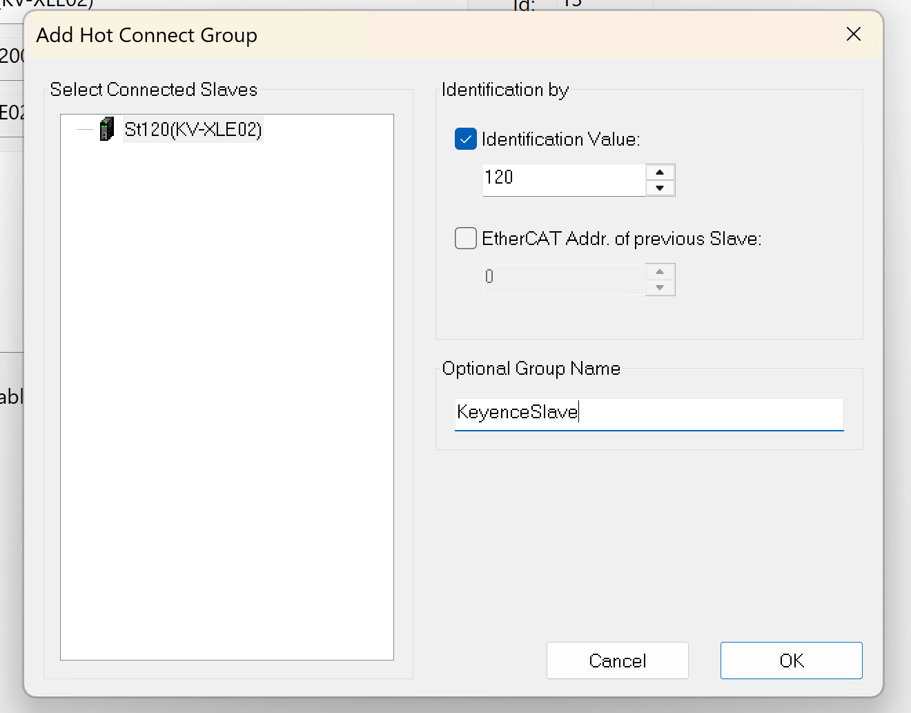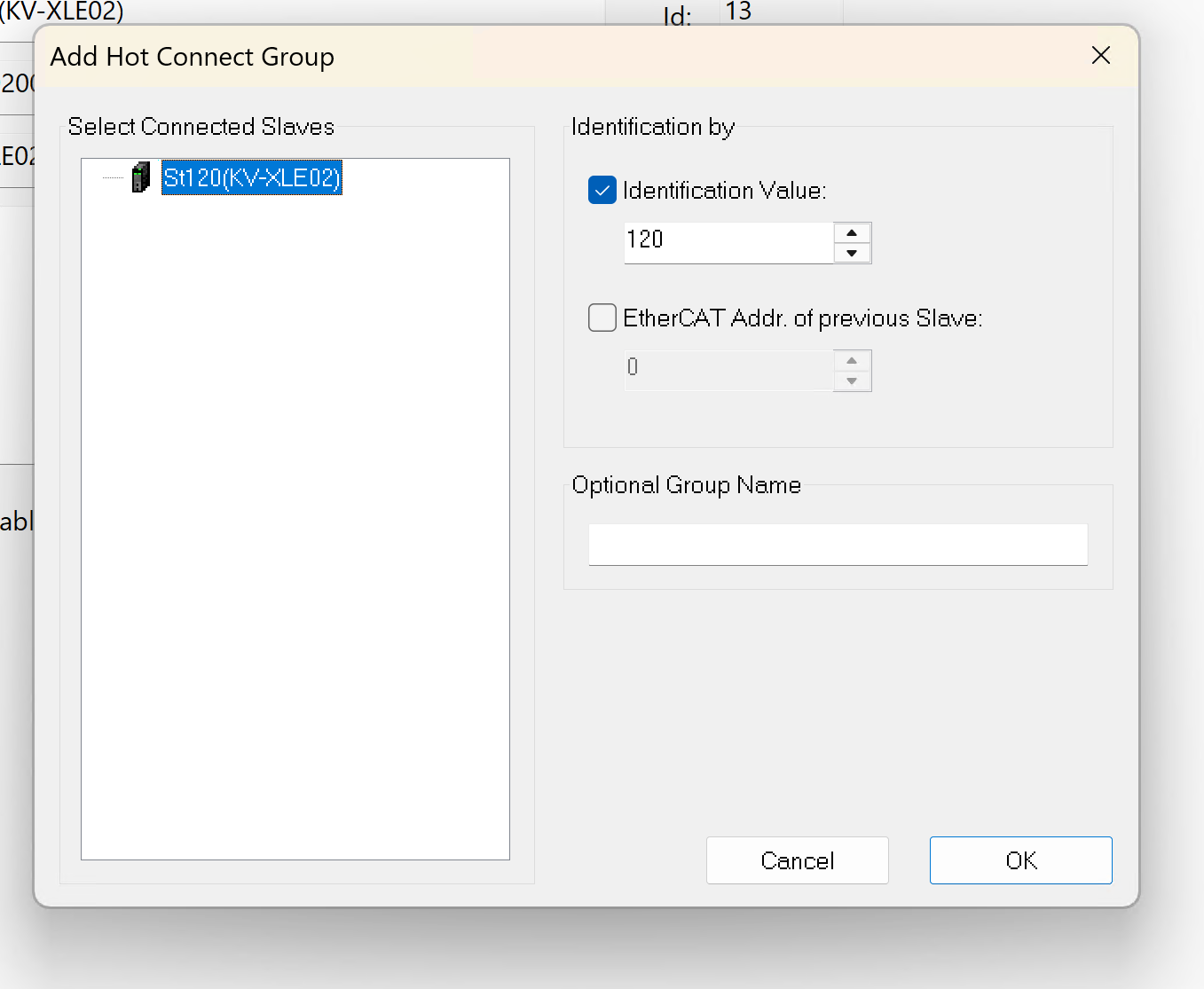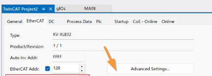 次はEtherCAT TabにあるIdentification ValueをKV studioに設定したIDと合わせましょう。