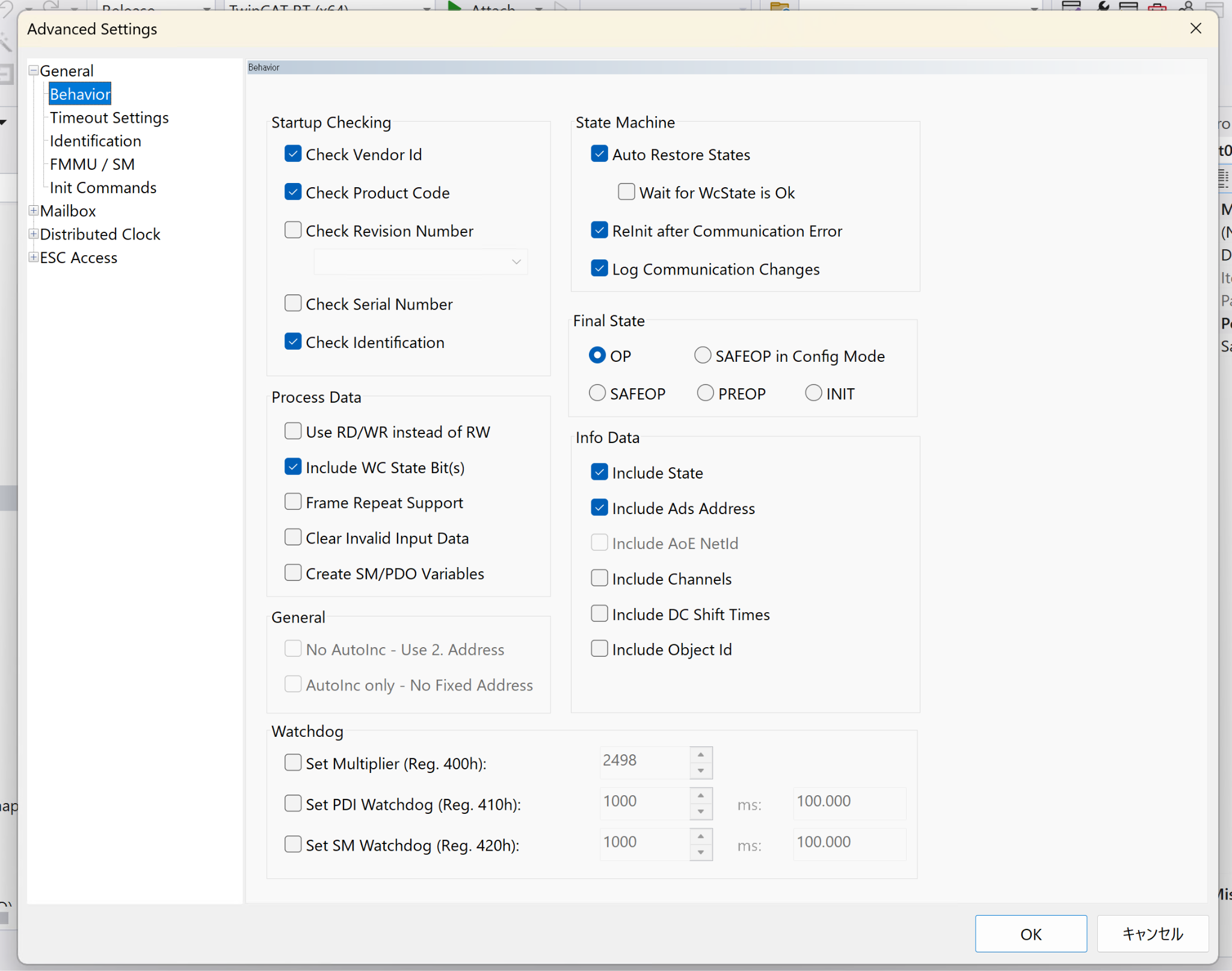 こちらは各EtherCATスレーブの詳細設定画面です。