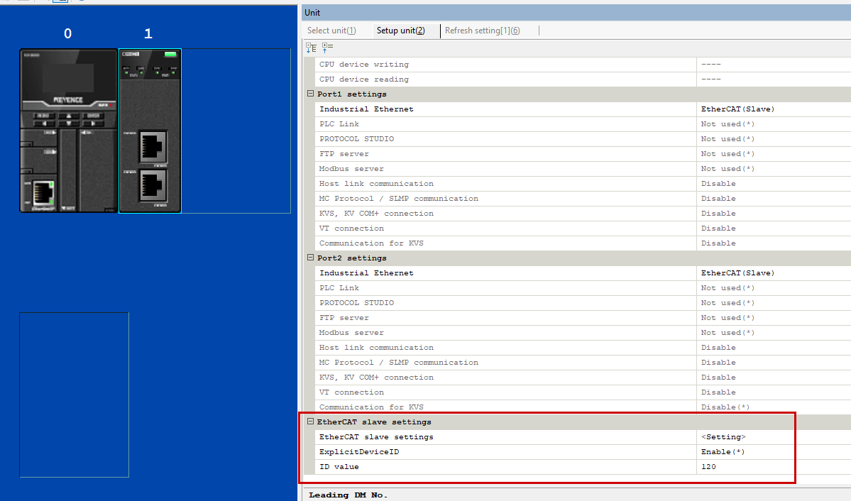 KV StudioでXLE-02を設定するとき、EtherCAT slave settingsに下図のように設定してください。