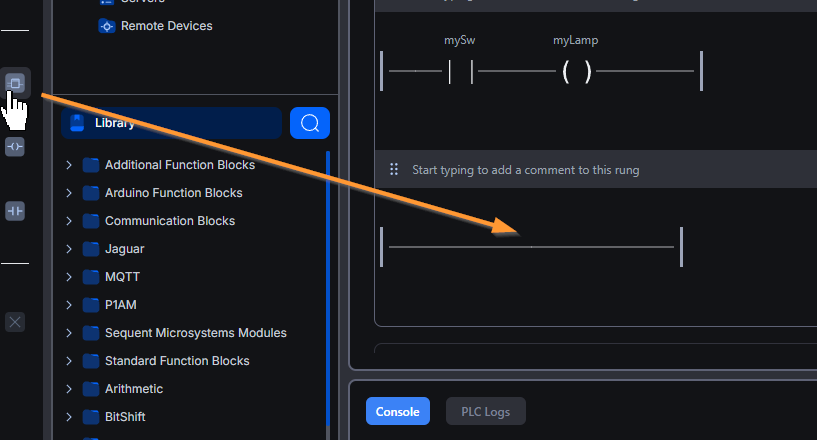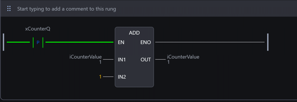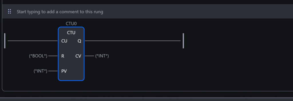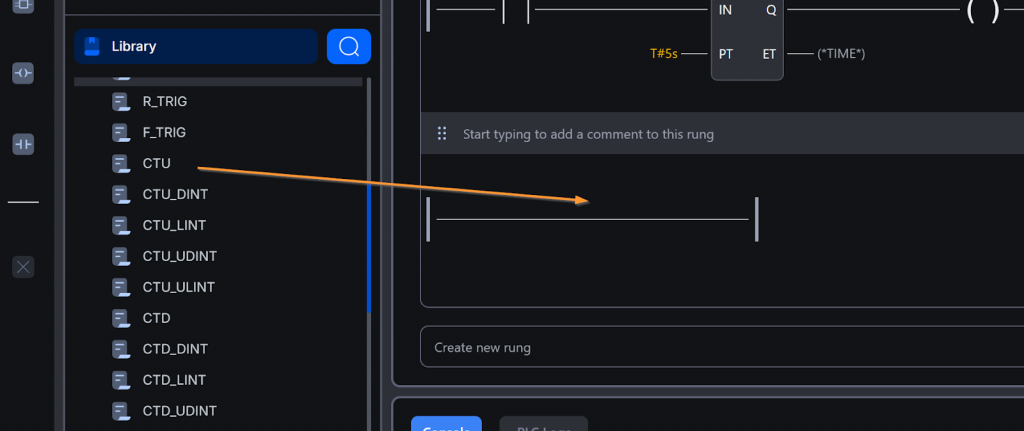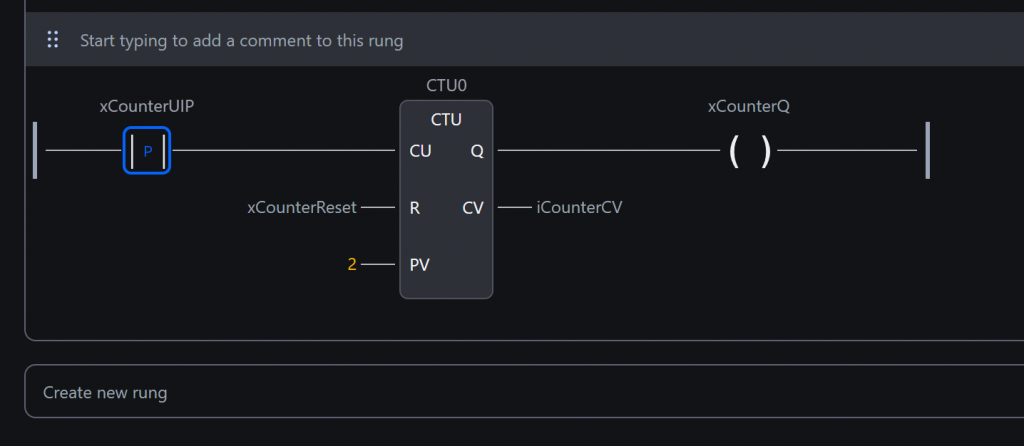 今度はIEC Counterを追加しましょう。左にあるLibraryからCTUブロックを新しいRungに追加します。