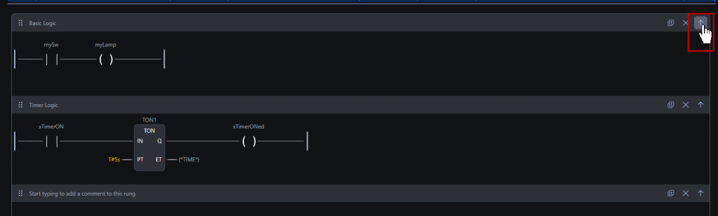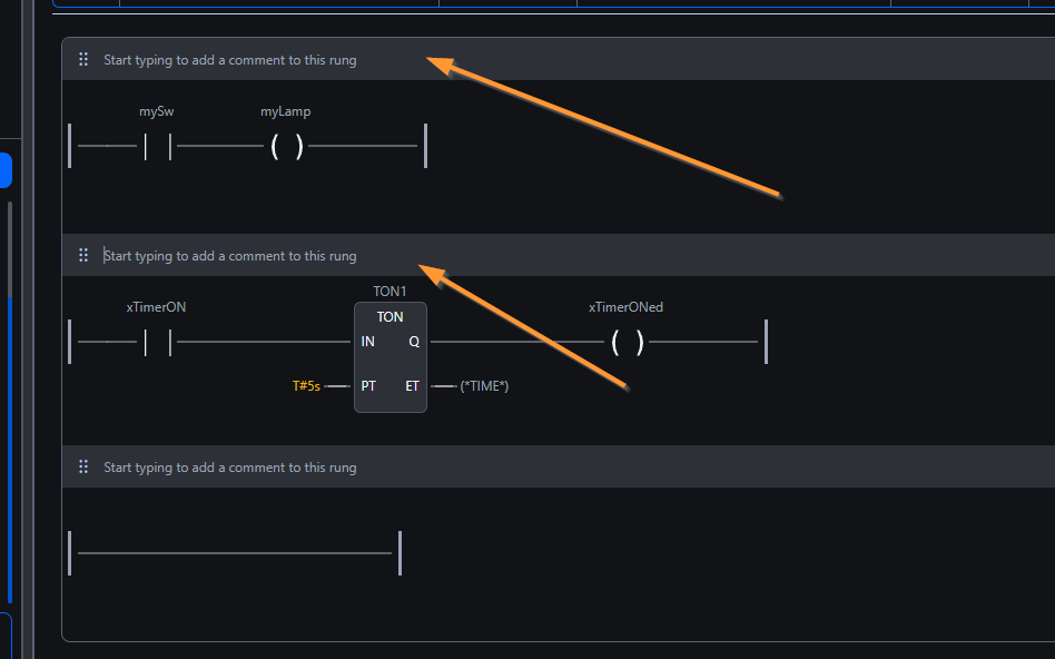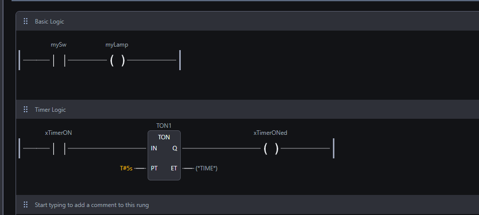 OPENPLC V4のラダーEditorには各Rung分けてコメントを付けられます。