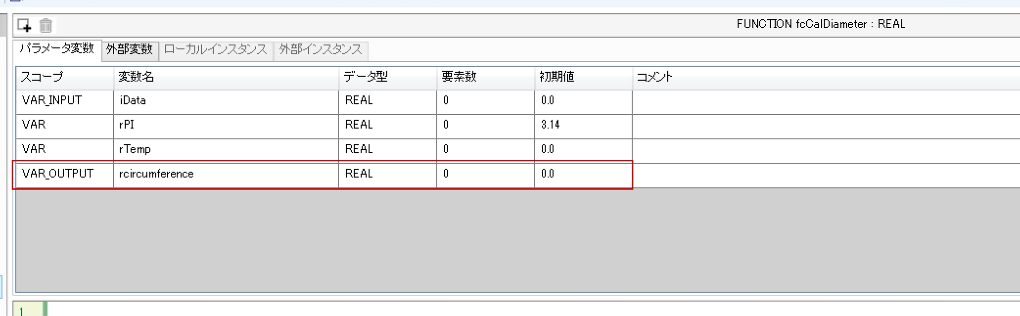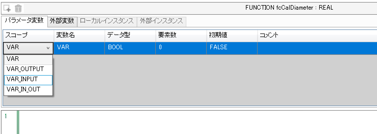 まずVAR_INPUTスコープの変数を定義します。それはファンクションの入力変数になります。